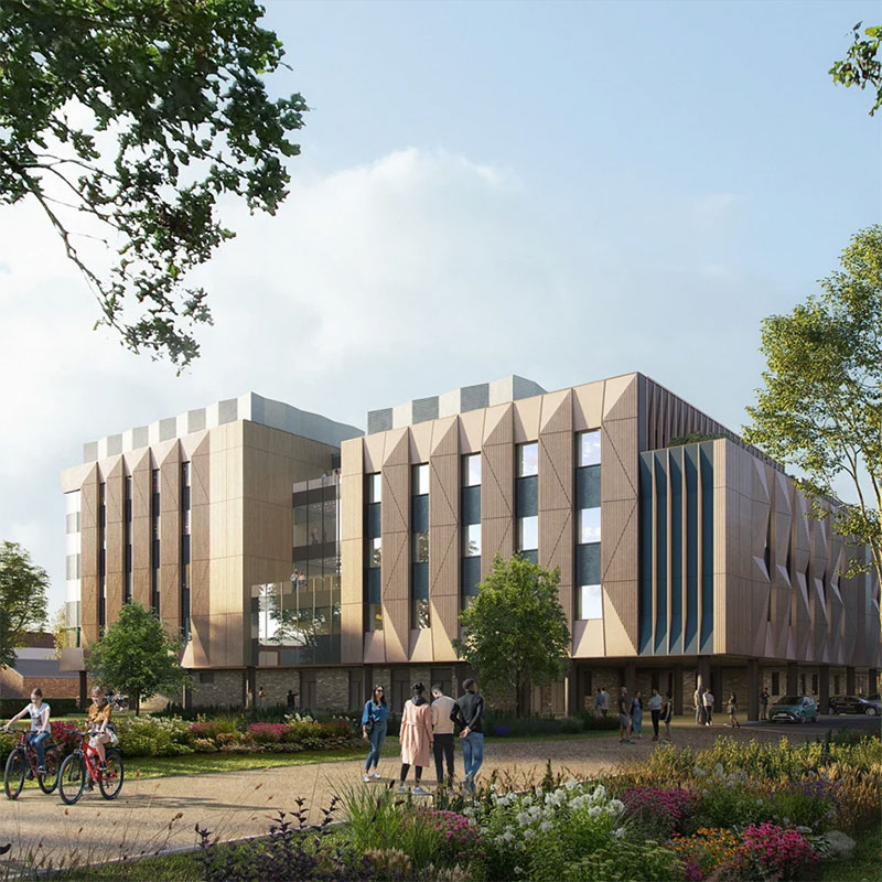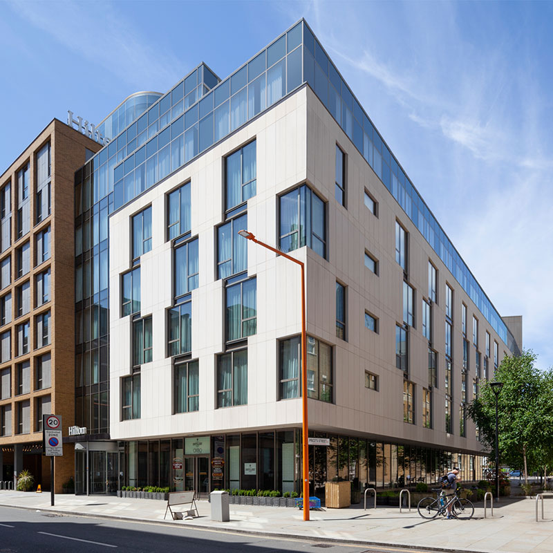 Facade: Aluminium Rainscreen Soffit Cladding; Aluminium Copings & Flashings; Acoustic Louvres