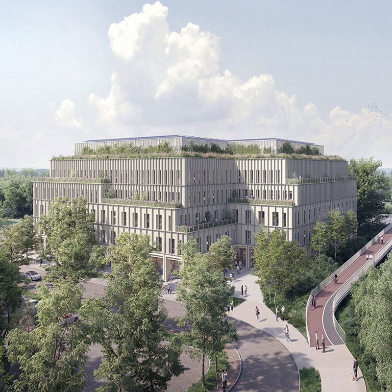 Facade: High-Performance Façade; Rear-Ventilated Rainscreen System with Sheet Metal Cladding; Rear-Ventilated Rainscreen System with Building-Integrated Photovoltaic (BIPV) Panels; Aluminium and Steel Mullion-Transom Curtain Wall System; Solar Shading Louvres