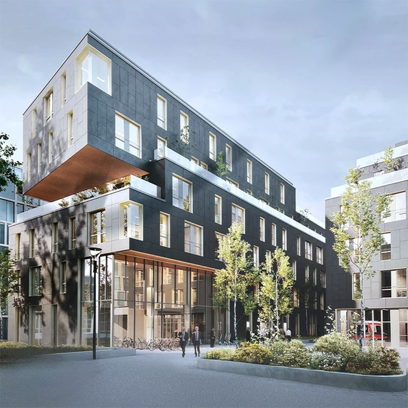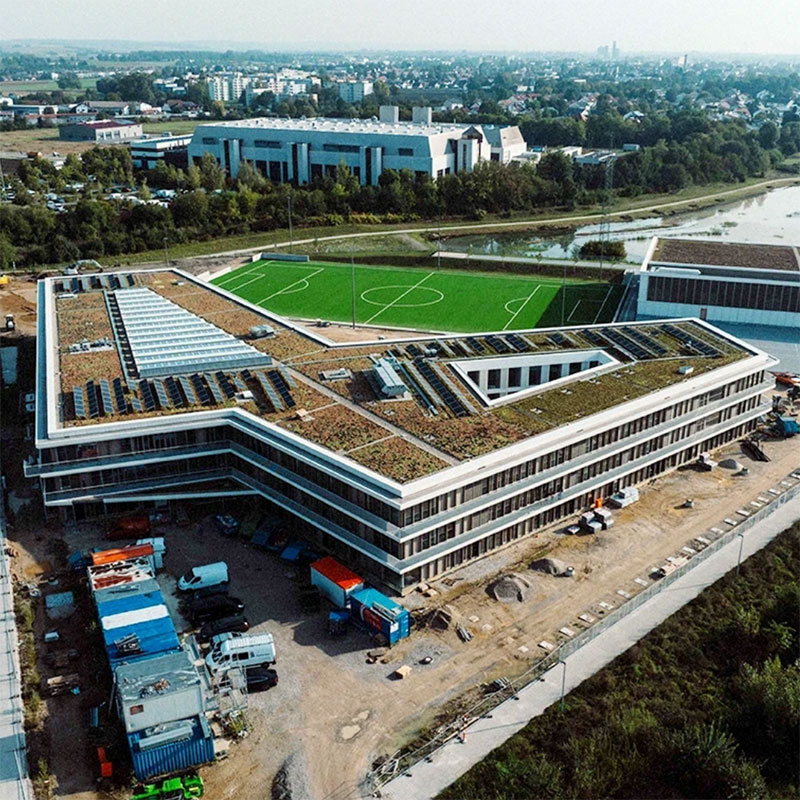 Facade: Aluminum Curtain Wall Facade; Ventilated Rainscreen Facade System; Green Roof and Terrace Integrated into the Facade System