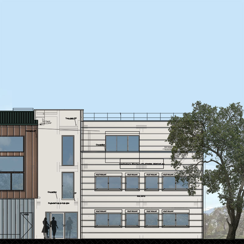 Facade: Aluminium Post-and-Rail Curtain Wall Facade; Ventilated Rainscreen Facade; ETICS (External Thermal Insulation Composite System)